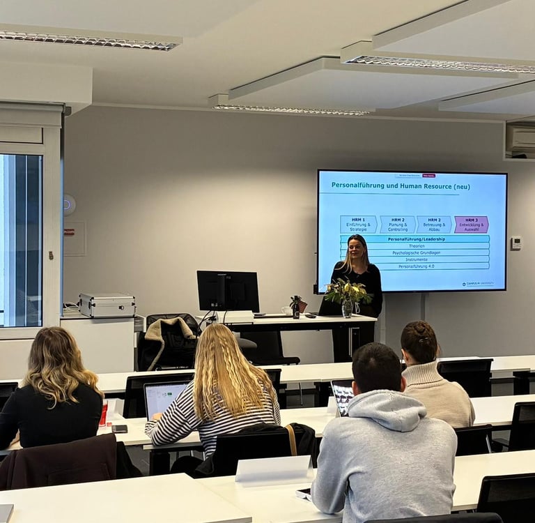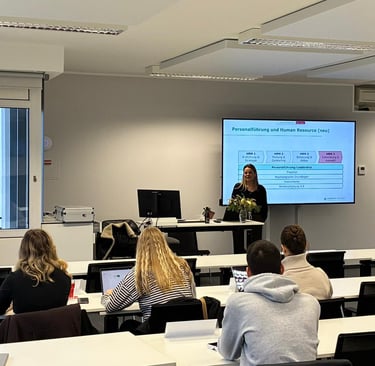 Neben meiner operativen Arbeit bin ich als Dozentin für Personalmanagement tätig. Der Austausch mit Studierenden und Nachwuchskräften hält meinen Blick auf aktuelle Erwartungen, Werte und Entwicklungen kontinuierlich offen und praxisnah. Gleichzeitig schärft die Lehre meinen Anspruch, Themen verständlich, fundiert und strukturiert zu vermitteln.